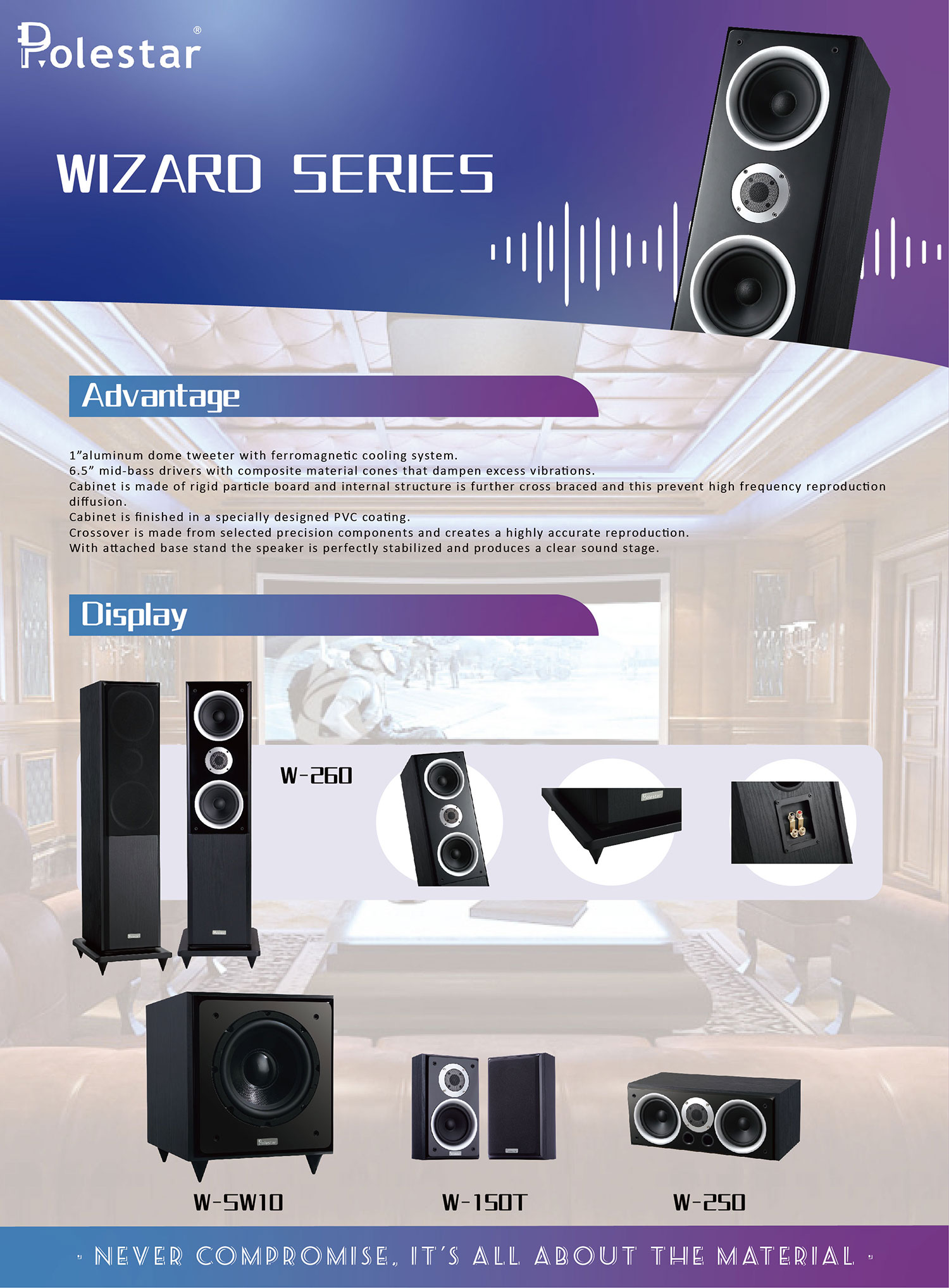 Throughout the ages poems, books, rituals and music have been integrated in the rivers of Chinese history and culture. Music is the voice of Chinese culture and this is true for any culture in the world. Vocal music has always been a very expansive way of expression and through it we are able to experience those from a vastly different culture or walk of life. Presently with the improvement of living standards and the technological innovation, home listeners are no longer limited to just music. To build and design a home theater is simply a reflection of our daily struggle to build a better life for ourselves. The Wizard series is launched with the aspirations that it will be suitable to anyone, whether they are building a living room home theater or an independent audio visual room.