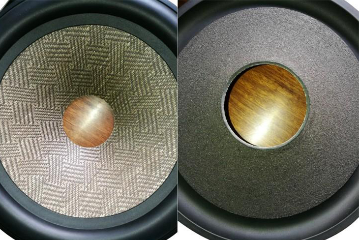 The woofer has an aluminum basin frame that is casted in one piece. The woofer cone is made of a three layer sandwich of materials. Overall the component is very rigid and with the internal damping the component suffers little distortion with an excellent breakup point.