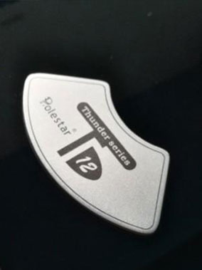The clean edges of the cabinet implies the highest craftsmanship and the minimalist aluminum CNC badge proudly displays the Polestar Logo and product identifier.